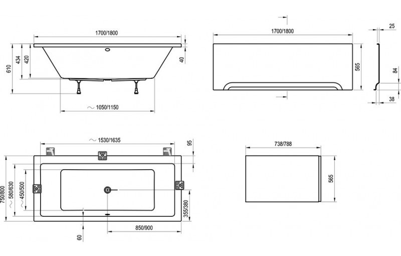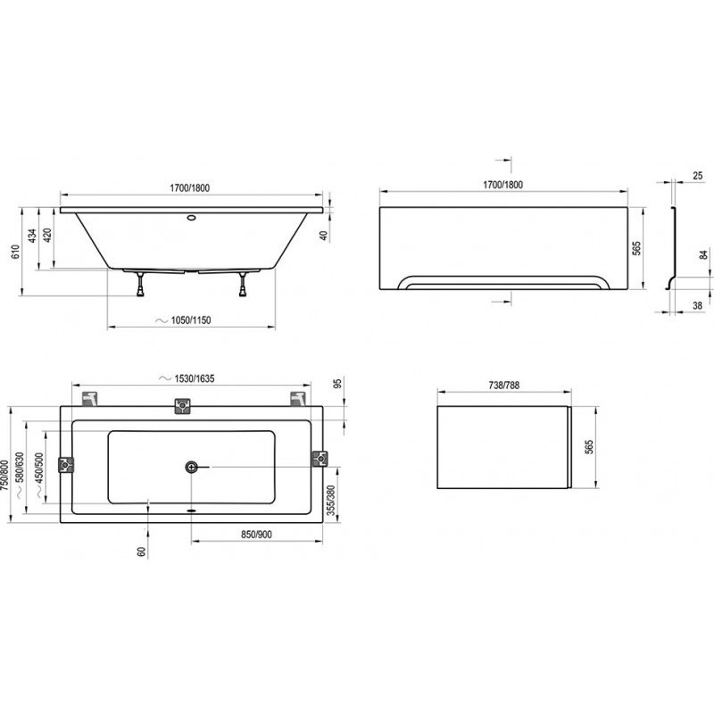 ✔ Додаткові аксесуари: передня і бічна панелі, стічний комплект для ванни.