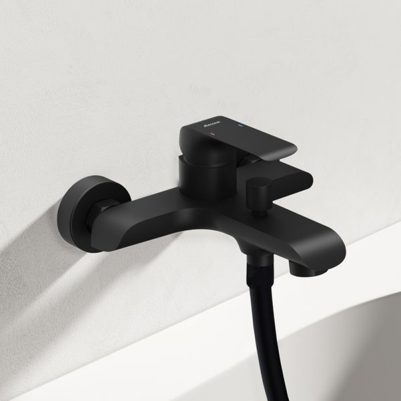 Змішувач Flat для ванни настінний підходить для кожної ванни, розміщеної біля стіни. Чутливе управління важелем змішувача забезпечує ідеальне регулювання потоку і температури води. Якісний перемикач із фіксацією гарантує комфортне перемикання потоку води між наповненням ванни та прийняттям душа, яке не вимикається навіть при зміні тиску води.