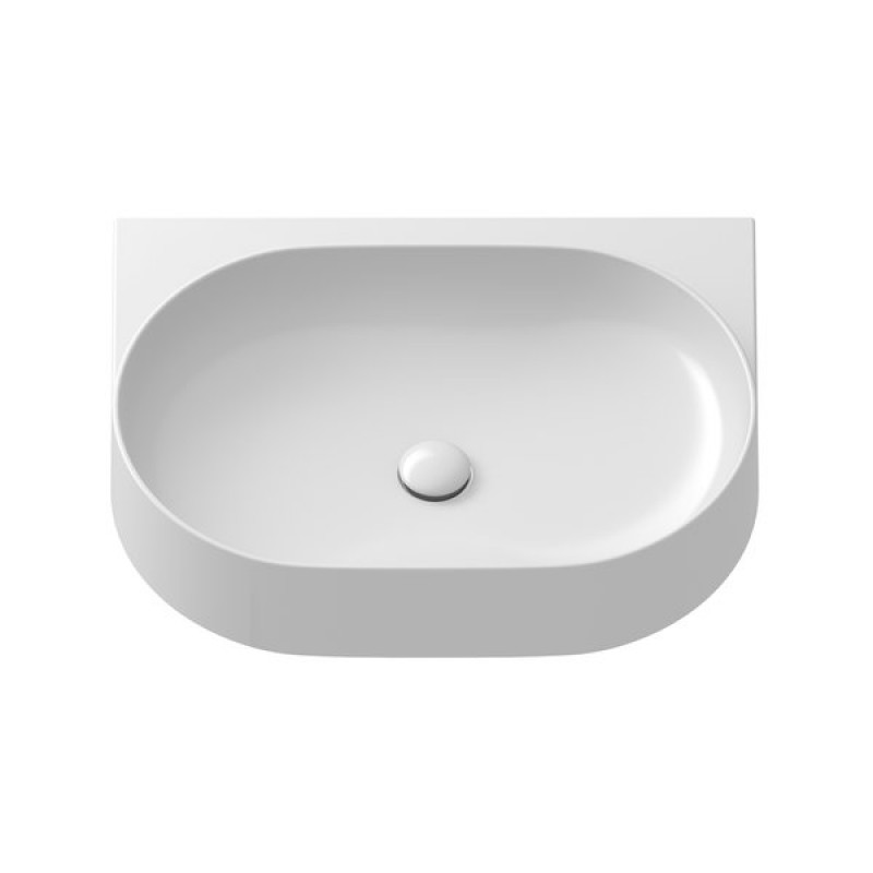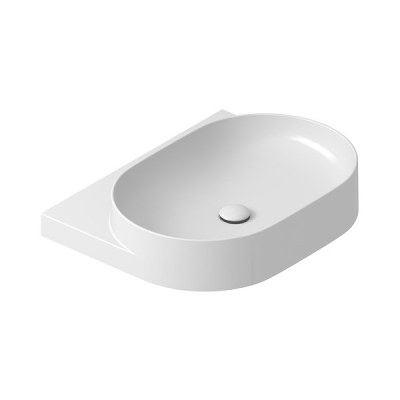 Керамічний умивальник Yard 600 відрізняється овальною формою та поглибленням для зберігання.
