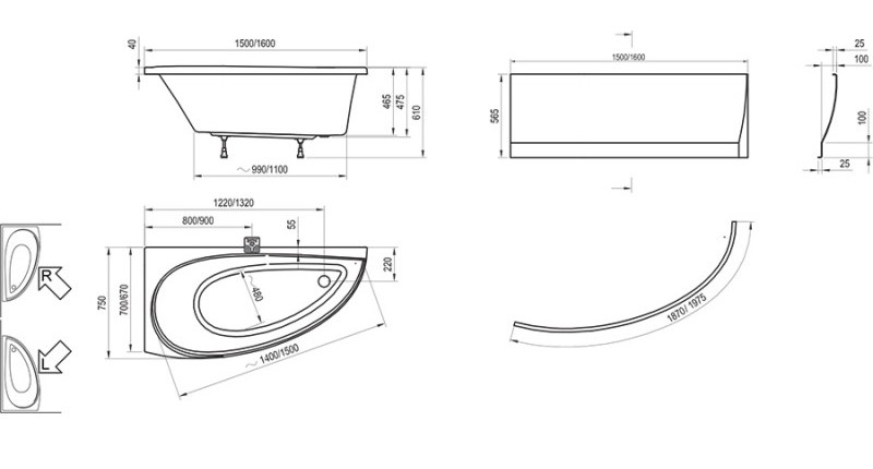 ✔ Додаткові аксесуари: передня панель, стічний комплект для ванни.