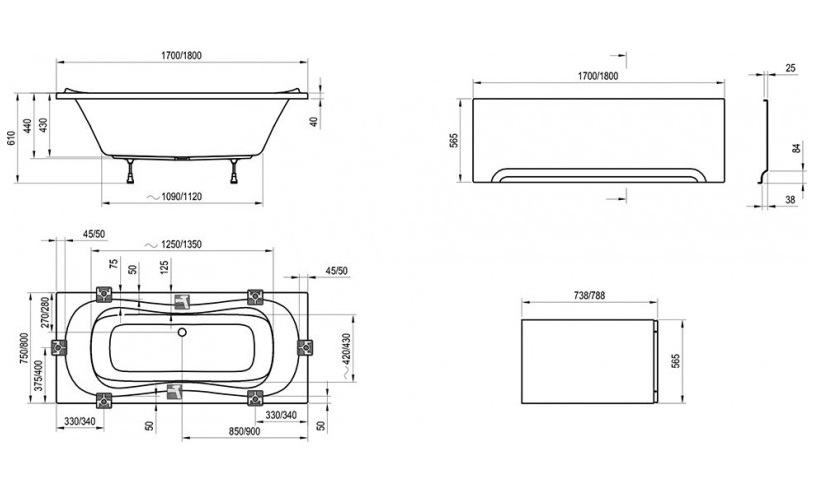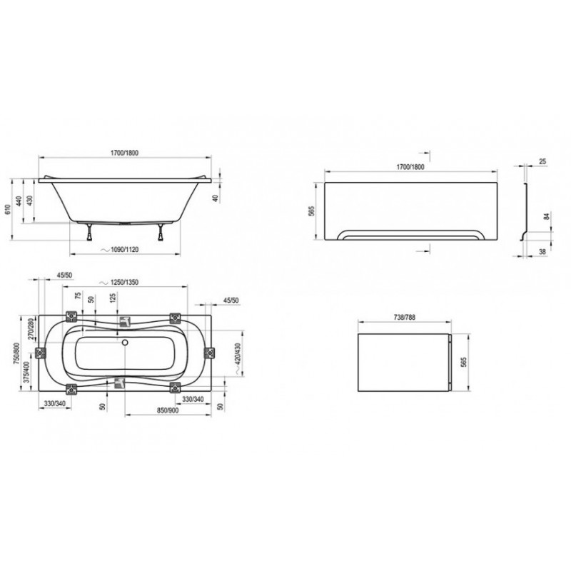 ✔ Додаткові аксесуари: передня і бічна панелі, стічний комплект для ванни