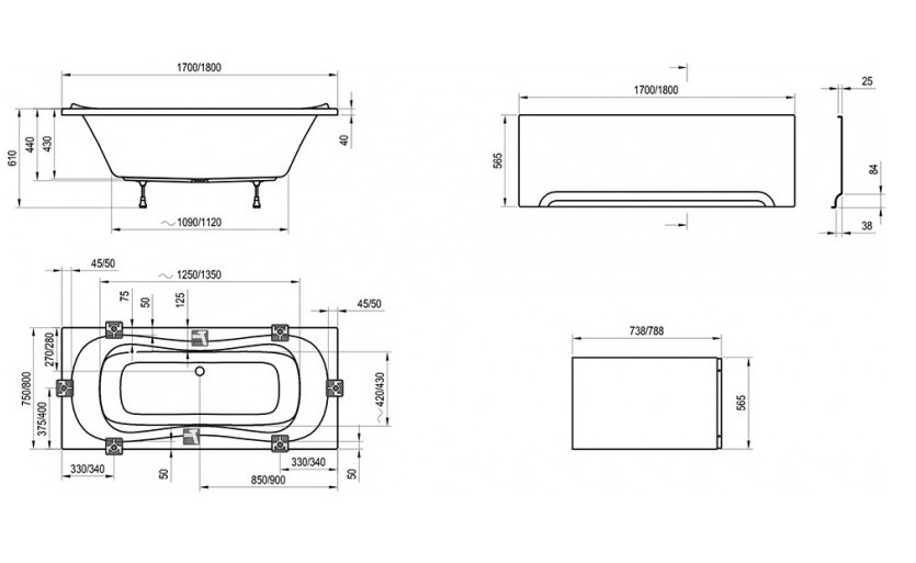 ✔ Додаткові аксесуари: передня і бічна панелі, стічний комплект для ванни