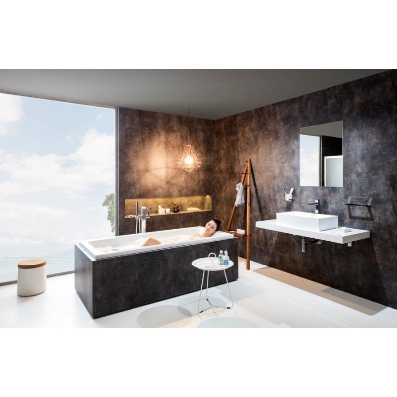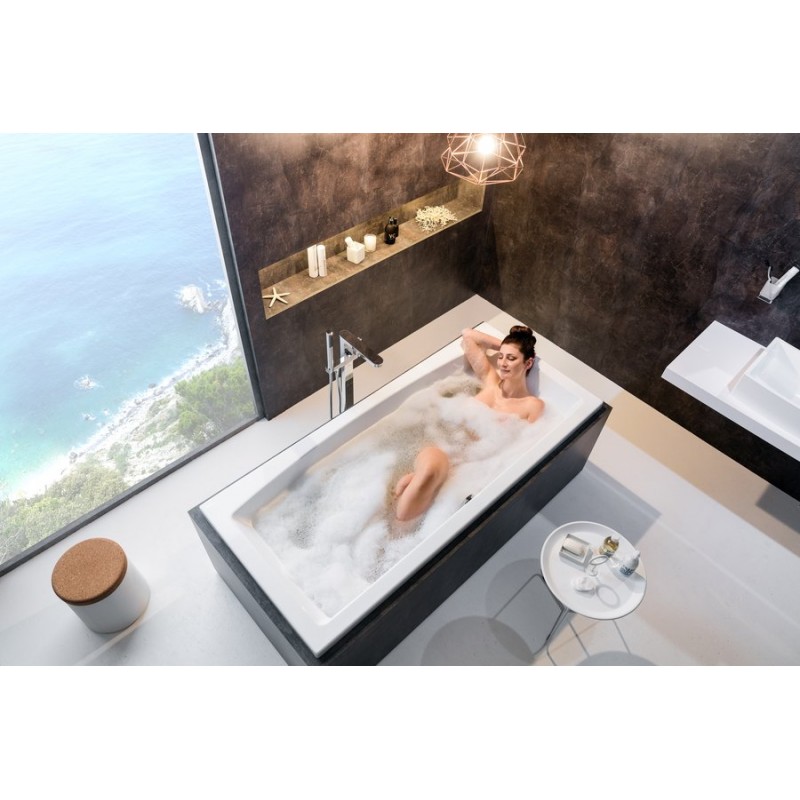 Легкий натяк на закругленість для динамічності форм. Популярна форма прямокутної ванни набула нової сили завдяки легкому прогину. Округлі внутрішні лінії ванни створюють теплу атмосферу у ванній кімнаті, і роблять купання ще приємнішим. Кожен може самостійно надати ванні закінчений естетичний вигляд (облицювати керамікою, деревом, штучним каменем, або ж використати передню і бічну панелі білого кольору).