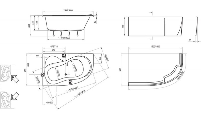 Особливості ванни Ravak Rosa 95 150x95 L C551000000