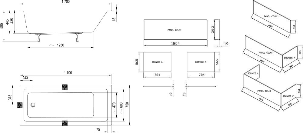 Прямокутну ванну 10° можна доповнити шторами для ванни VS2, VS3, VS5, CVS2, PVS1, NVS1, BVS1, BVS2. До ванни рекомендуємо передню та бічну панелі та стічний комплект для ванни.