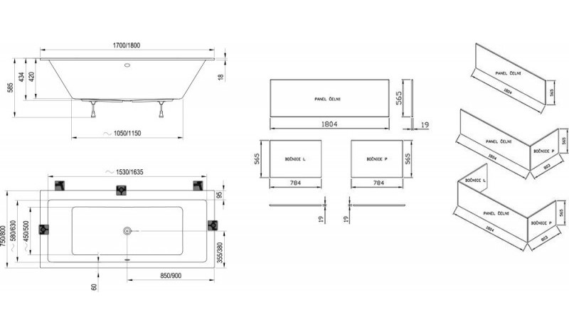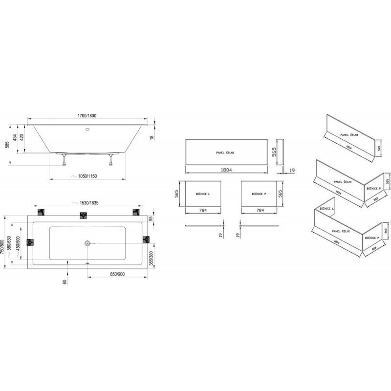 Для ванни розміром 180 х 80 см можна придбати передню та бічні панелі з плити МДФ білого кольору. Система кріплення передньої панелі є частиною панелі, немає потреби купувати кріплення окремо!
