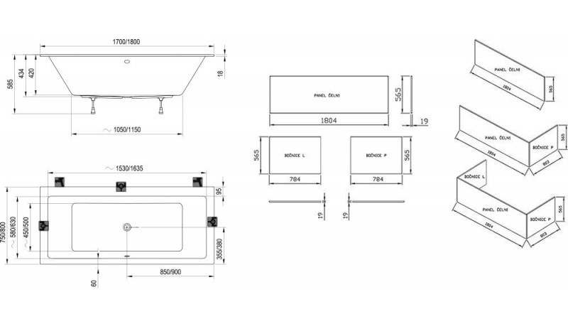Для ванни розміром 180 х 80 см можна придбати передню та бічні панелі з плити МДФ білого кольору. Система кріплення передньої панелі є частиною панелі, немає потреби купувати кріплення окремо!