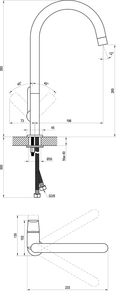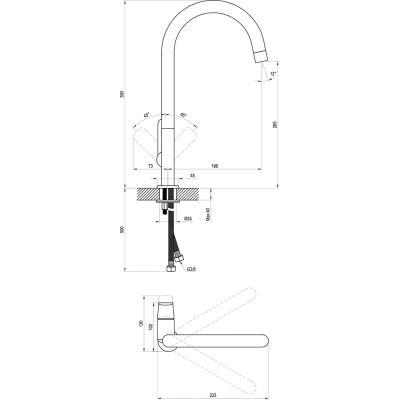 | З'єднуючі шланги: | гнучкий 420 мм, діаметр G3/8 |